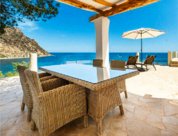 Clifftop Panorama: Perched on Cala Llonga’s rocky coast with breathtaking sea views.